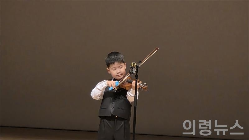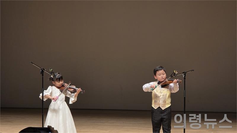 (사)한국예술총연합회 의령지회, 출범식 식전공연 칠곡초등학교1년생 김민준,심예준,윤윤하 학생./사진=주소은 기자